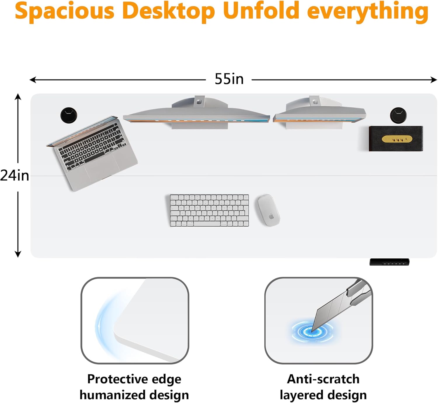 - 【Extra Large Workstation】– Boost productivity with our 55" L x 24" W desktop, providing ample space for monitors, keyboards, and office essentials. Designed for professionals and gamers, this clutter-free desk ensures a smooth workflow for work, design, or gaming. Enjoy functionality and freedom in one versatile workspace
