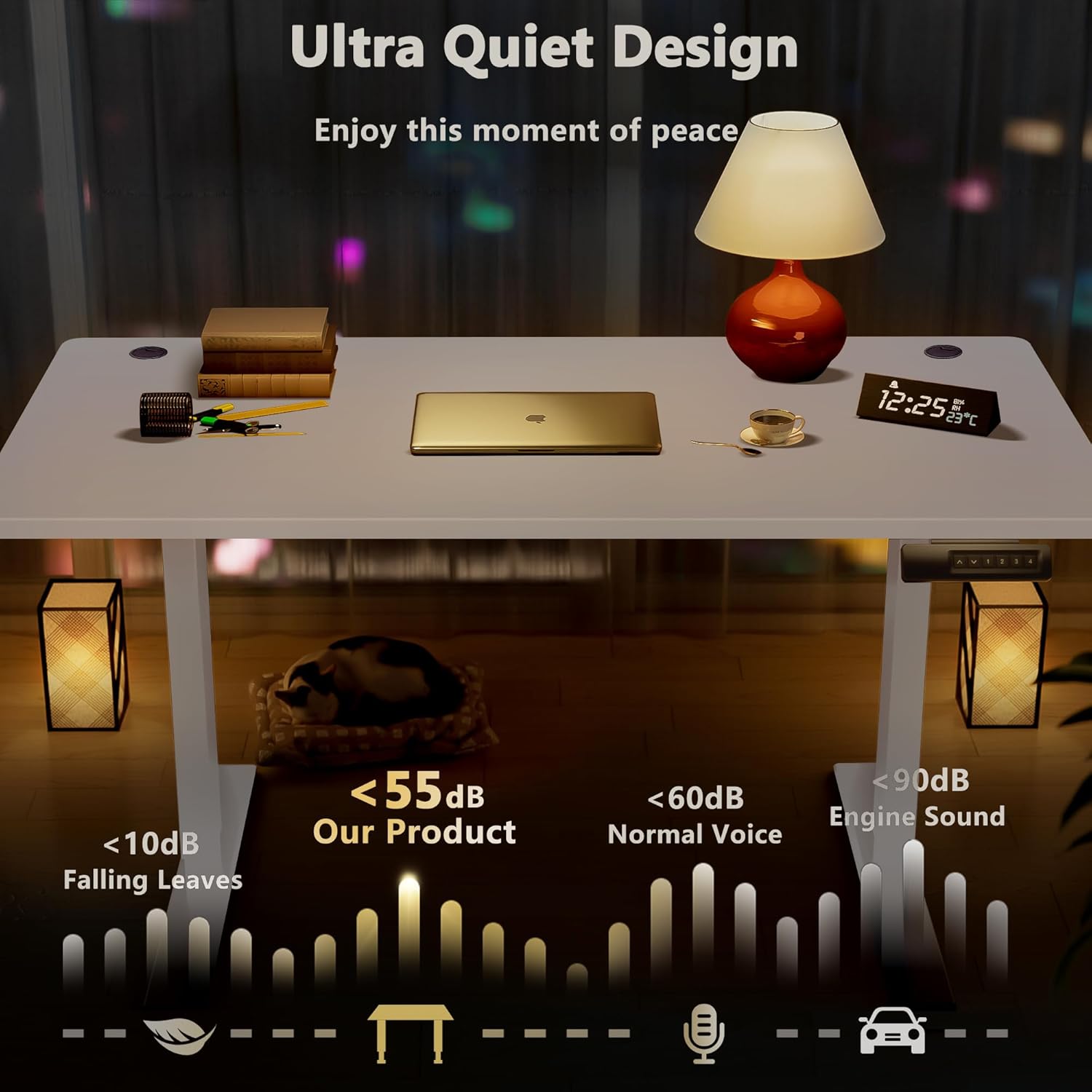 - 【Durable & Quiet Motor】– Designed for peak performance, our electric standing desk boasts a high-quality motor that delivers smooth, quiet height adjustments from 27.9" to 46.8", while the advanced anti-collision system ensures safe operation without interruptions