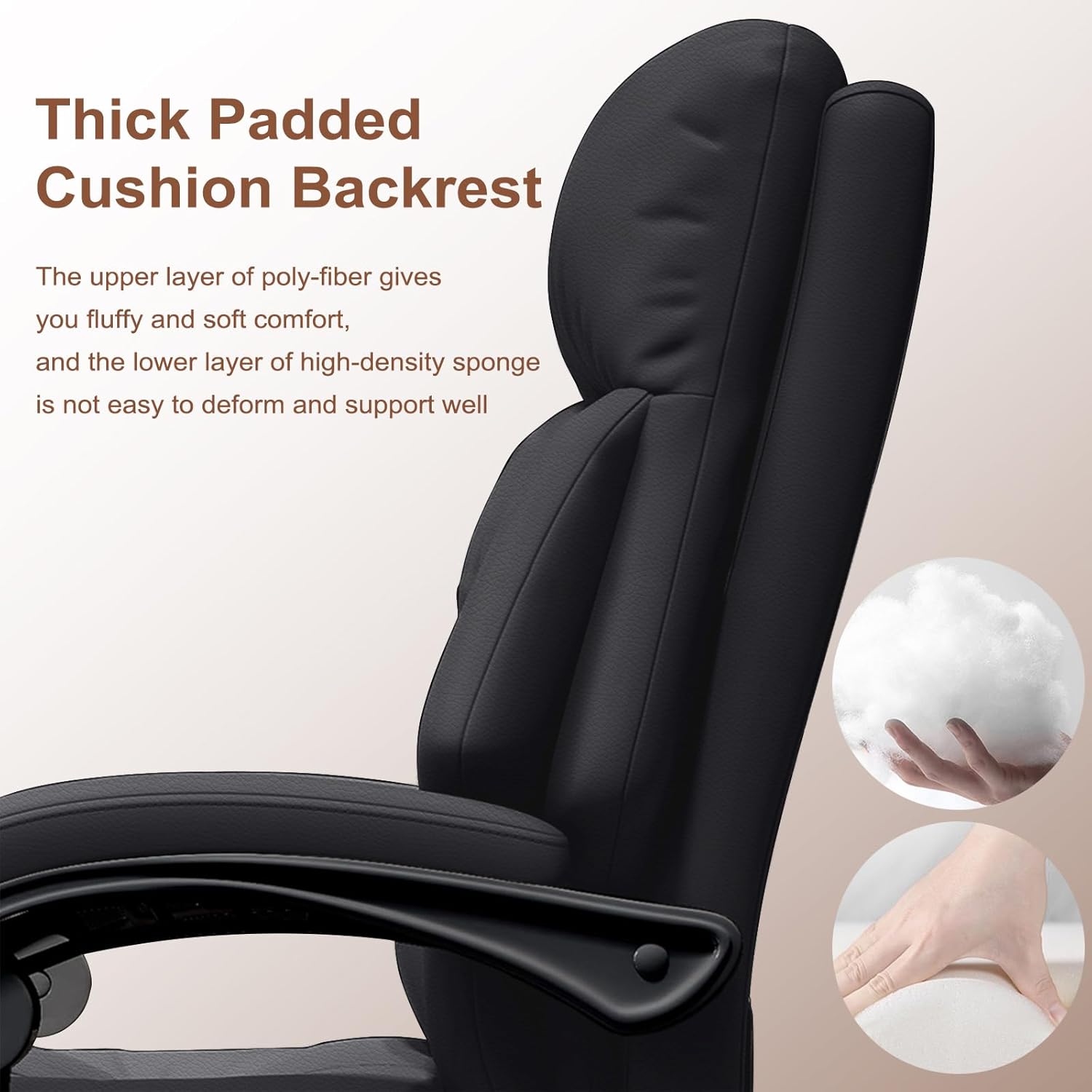 Executive Office Chair Comfortable Desk Chairs with Foot Rest High Back Computer Gaming Chairs Reclining PU Leather Swivel Work Chair for Home Office