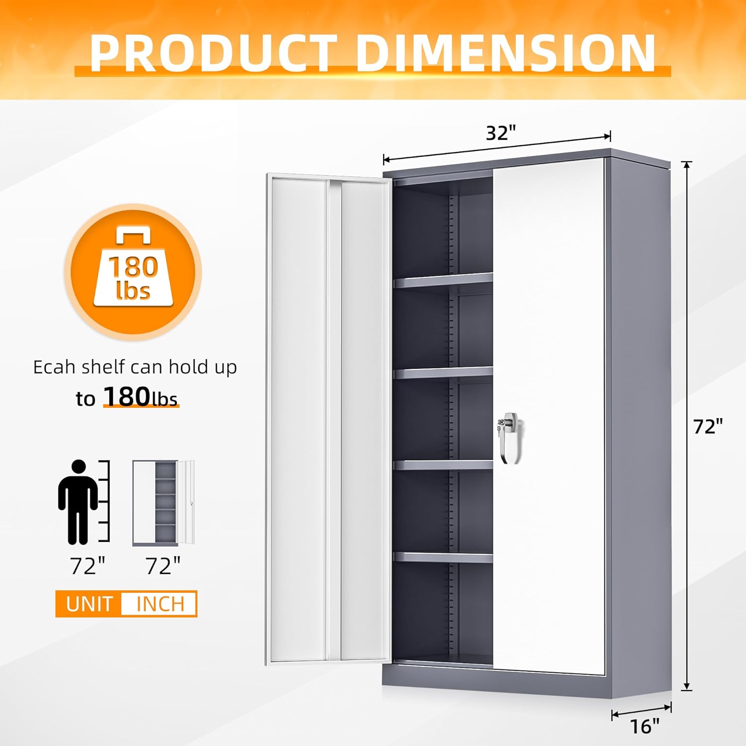 - 『Multi-scene』: Grey White metal storage cabinet with locking doors is perfect for storing large quantities of items, this large steel storage cabinet adds extra space to any room and can be used in home office, garage, basement, etc.