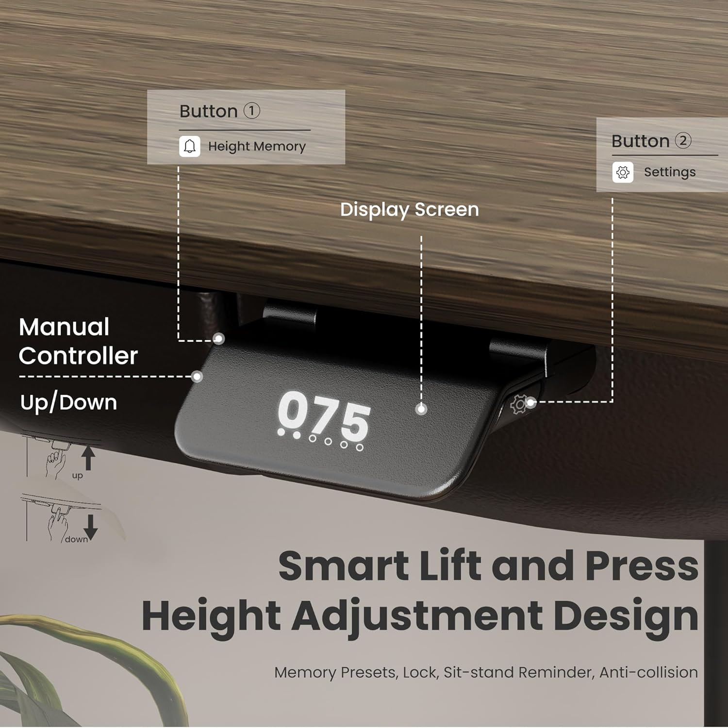 - Whisper-Quiet Dual-Motor Lift: The powerful dual-motor system operates smoothly and quietly under 50dB, lifting at 35mm/s. Adjust between 29.1"–47.6"with just a touch. Two memory presets with child lock allow quick sit-stand transitions while keeping your settings safe.