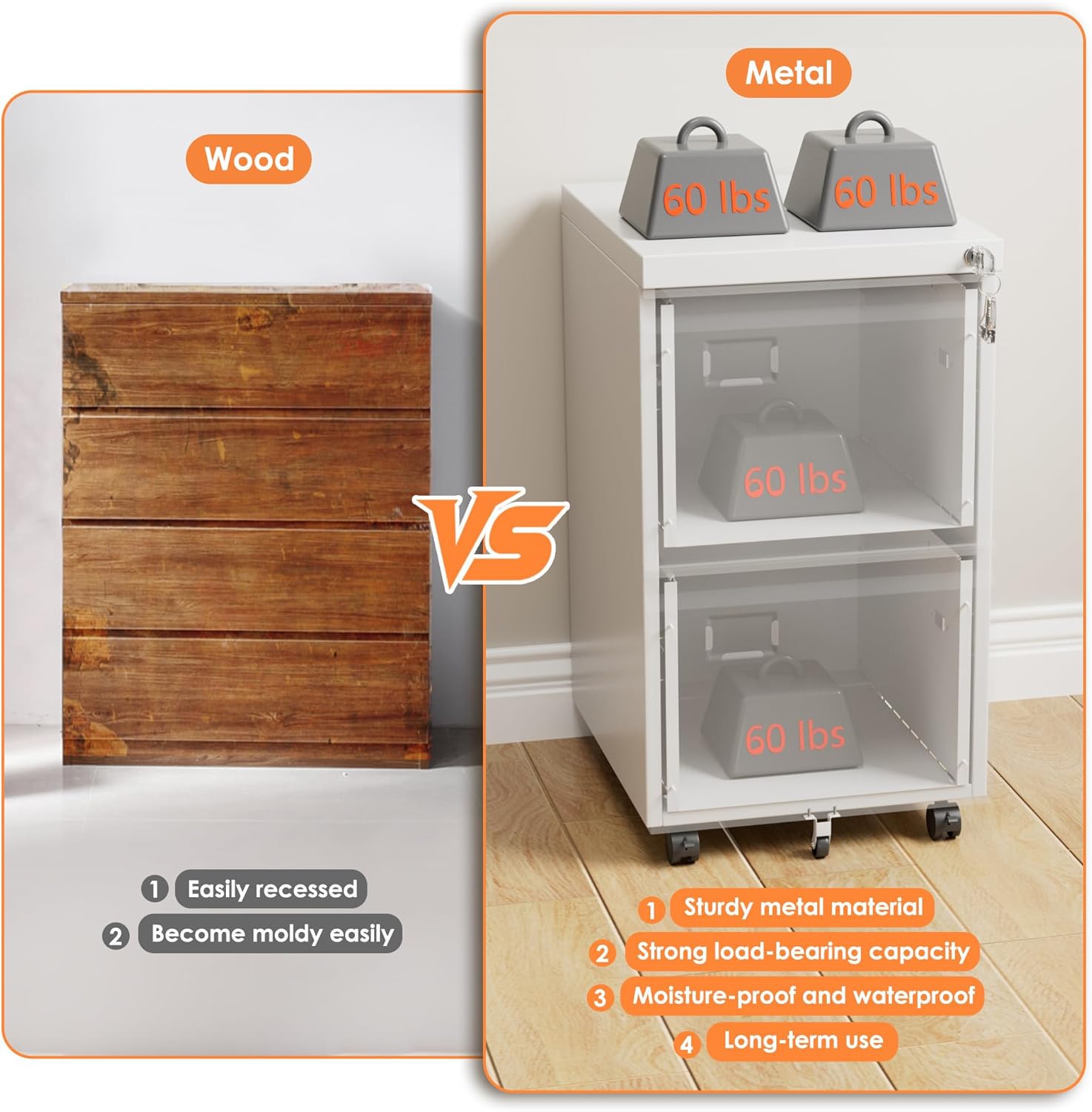 - [Sturdy Construction] This pedestal cabinet is made of high quality steel with anti-rust electrostatic spraying for long-lasting and bears up to 220lbs in total